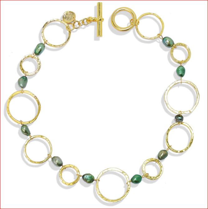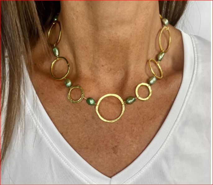 Karine Sultan Green Pearl and Hammered Gold Choker