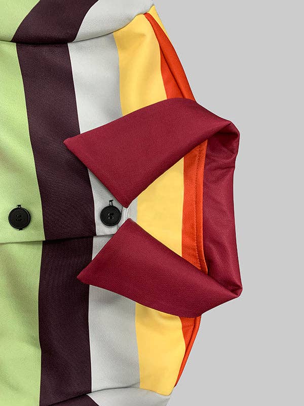 UZ Wholesale Puff Sleeves Multi-Colored Thick Striped Lapel Blouses&Shirts Tops: COLORFUL / L