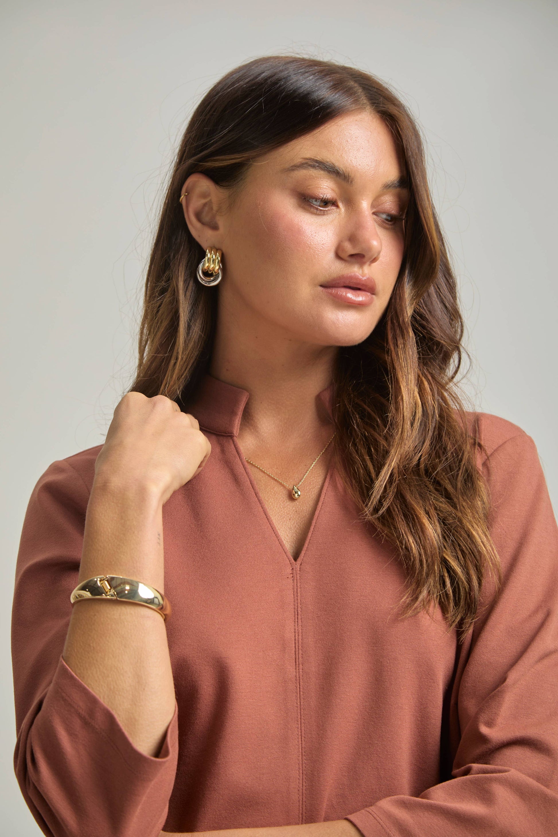 Work-appropriate A line dress with Mandarin collar in our Magic ponte fabric! We love the classic look on this dress. Perfect for any occasion and everyday wear!