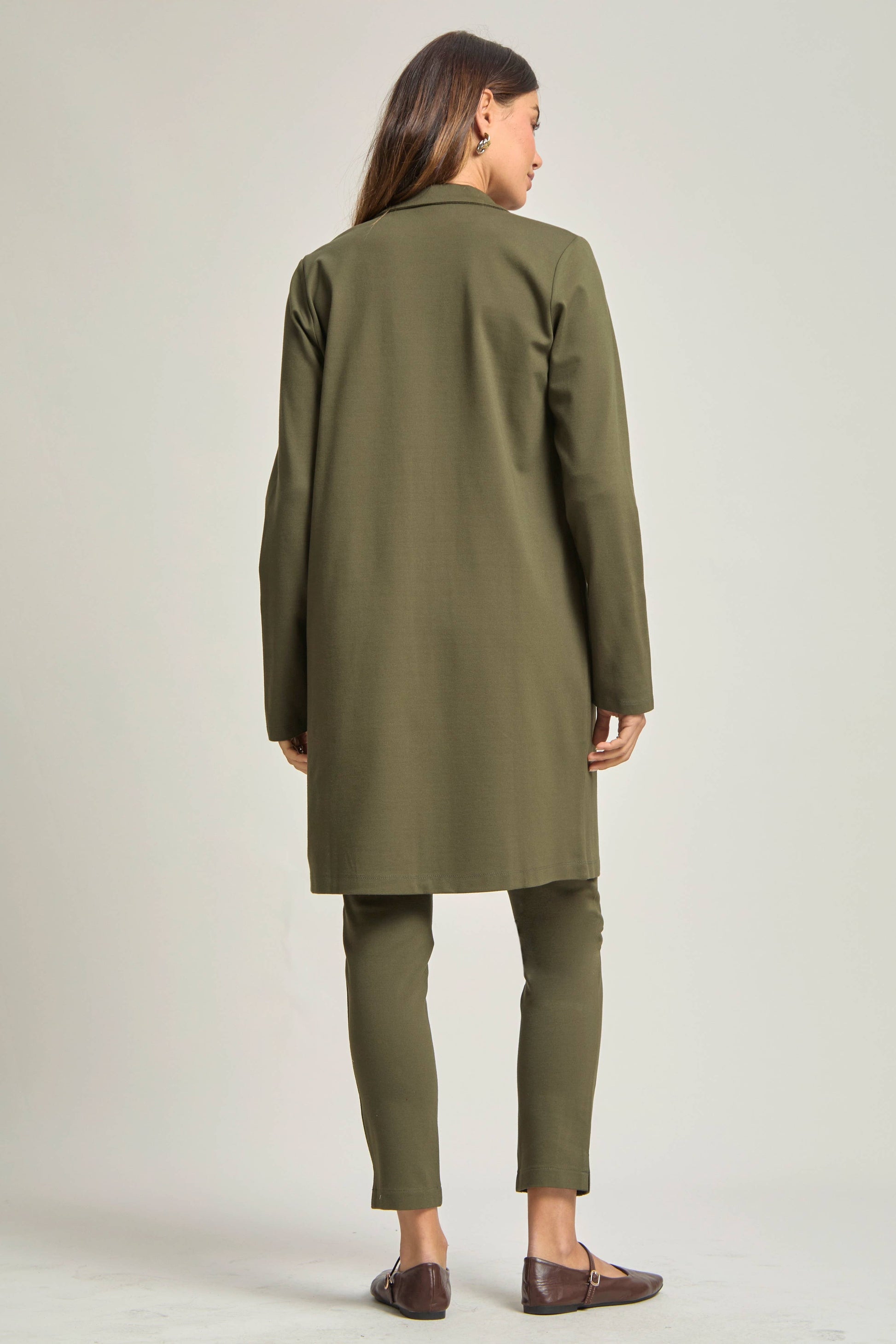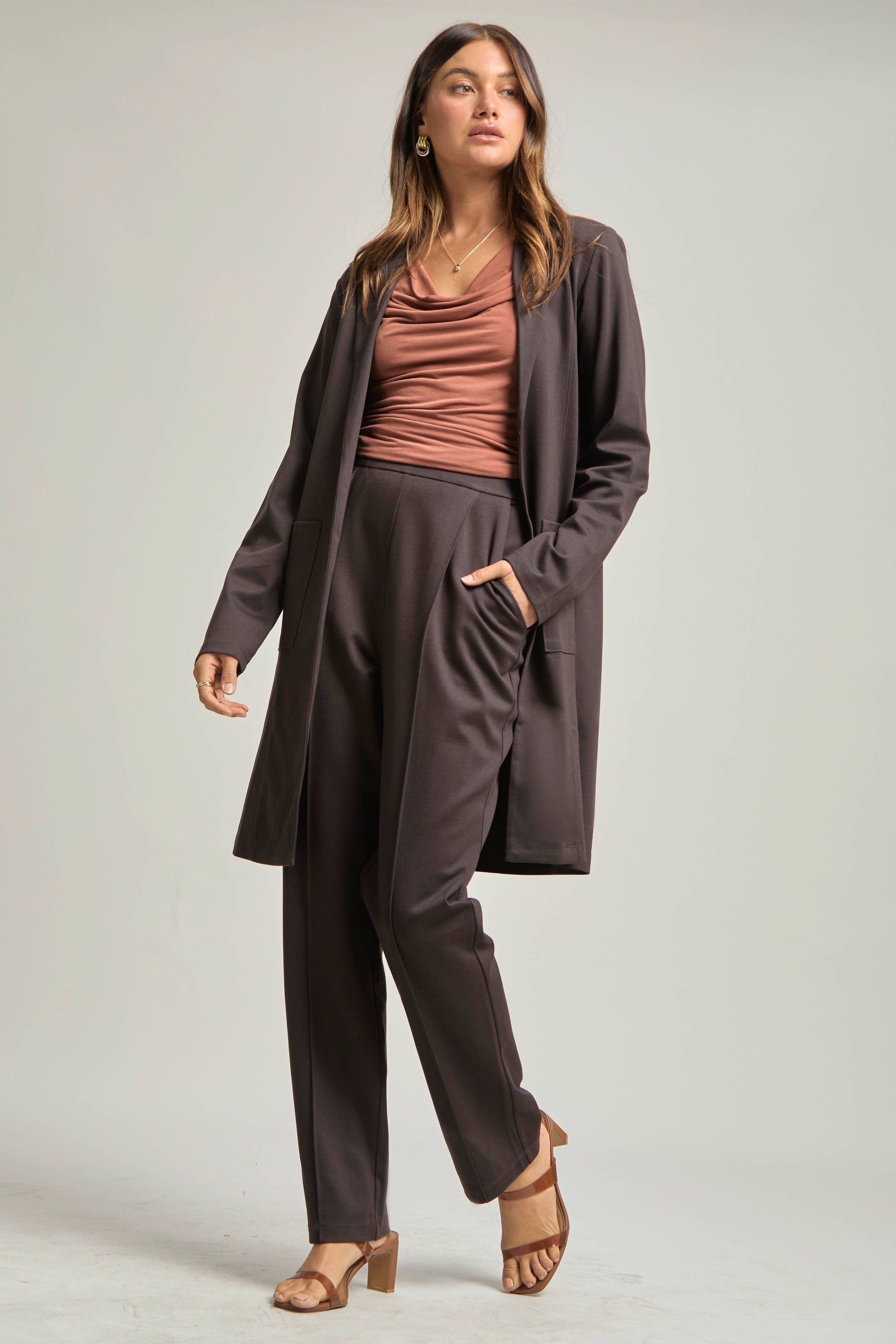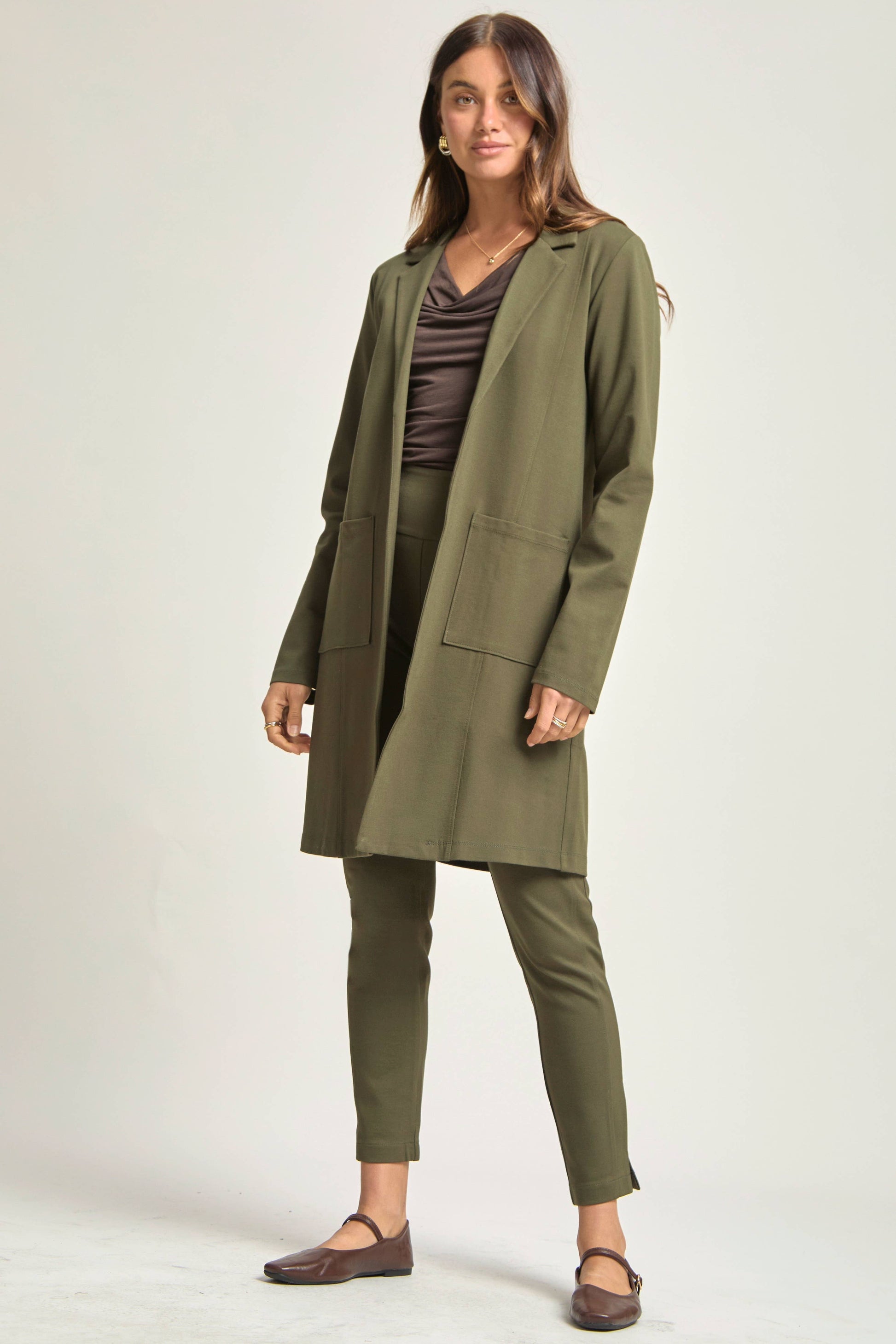 Elevate your outerwear game with this effortlessly chic midi jacket, designed to hit that perfect length! Offering both style and function, this jacket provides just the right amount of coverage for transitional weather while still keeping your silhouette sleek. Complete the look with our Magic Pants!