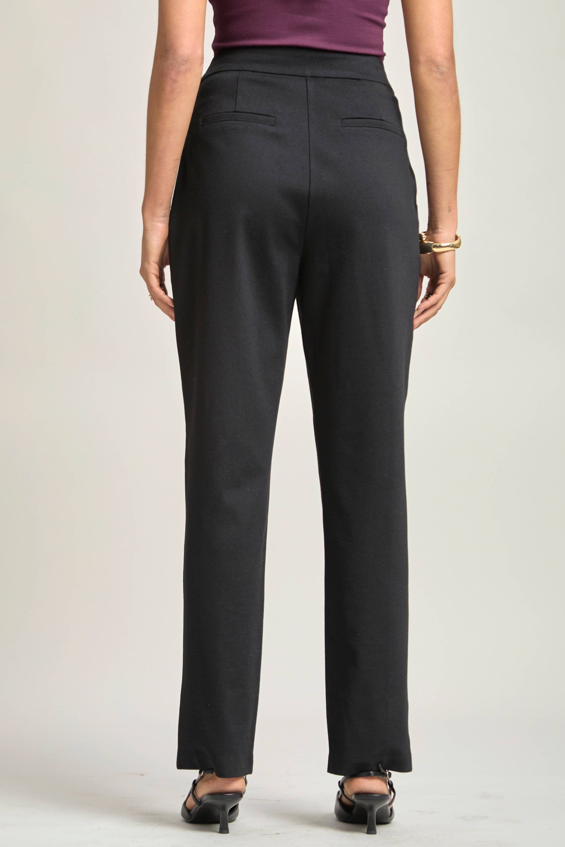 Our new addition to the Magic Collection is here! This barrel leg pants comes in our ponte fabric with a high waist elastic and relaxed feel throughout the leg. All you have to do it pull on the pants without zipper!