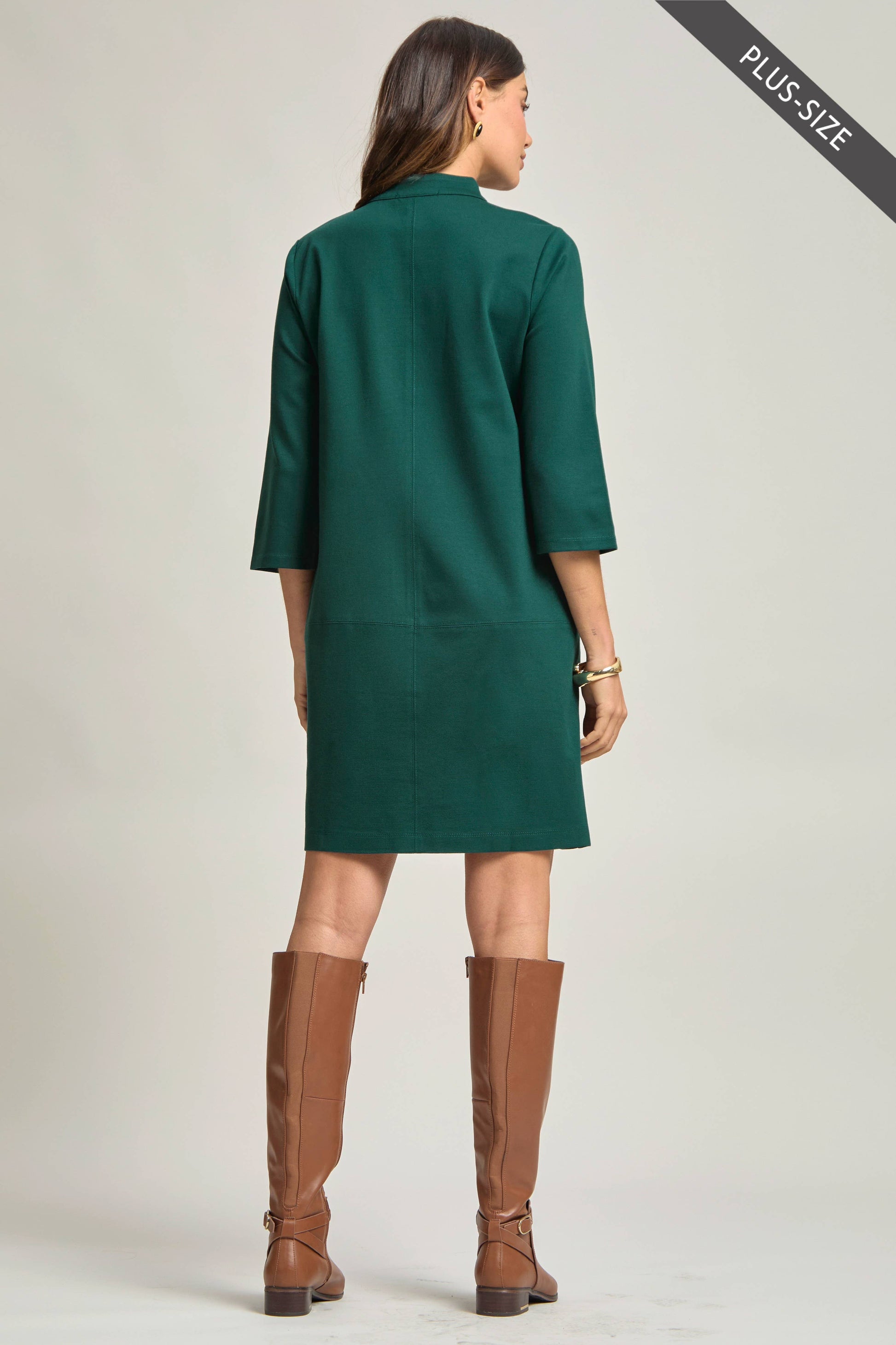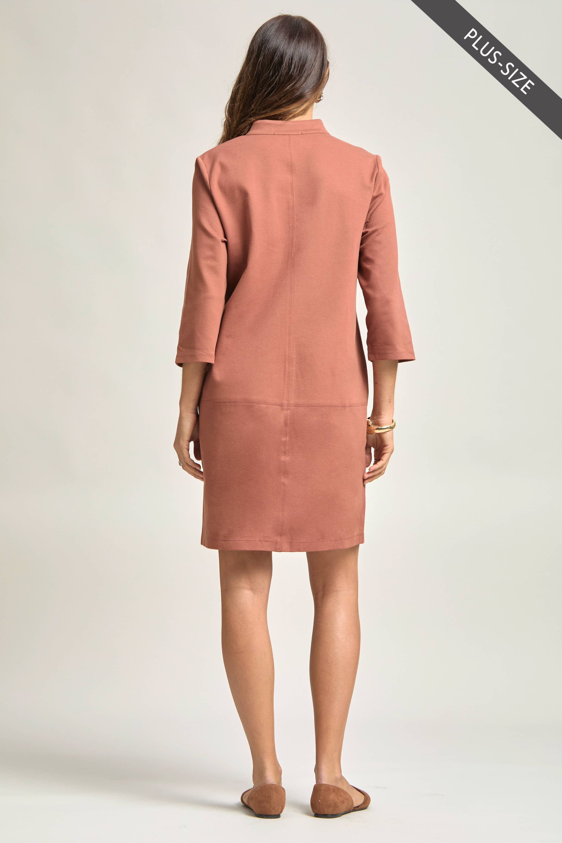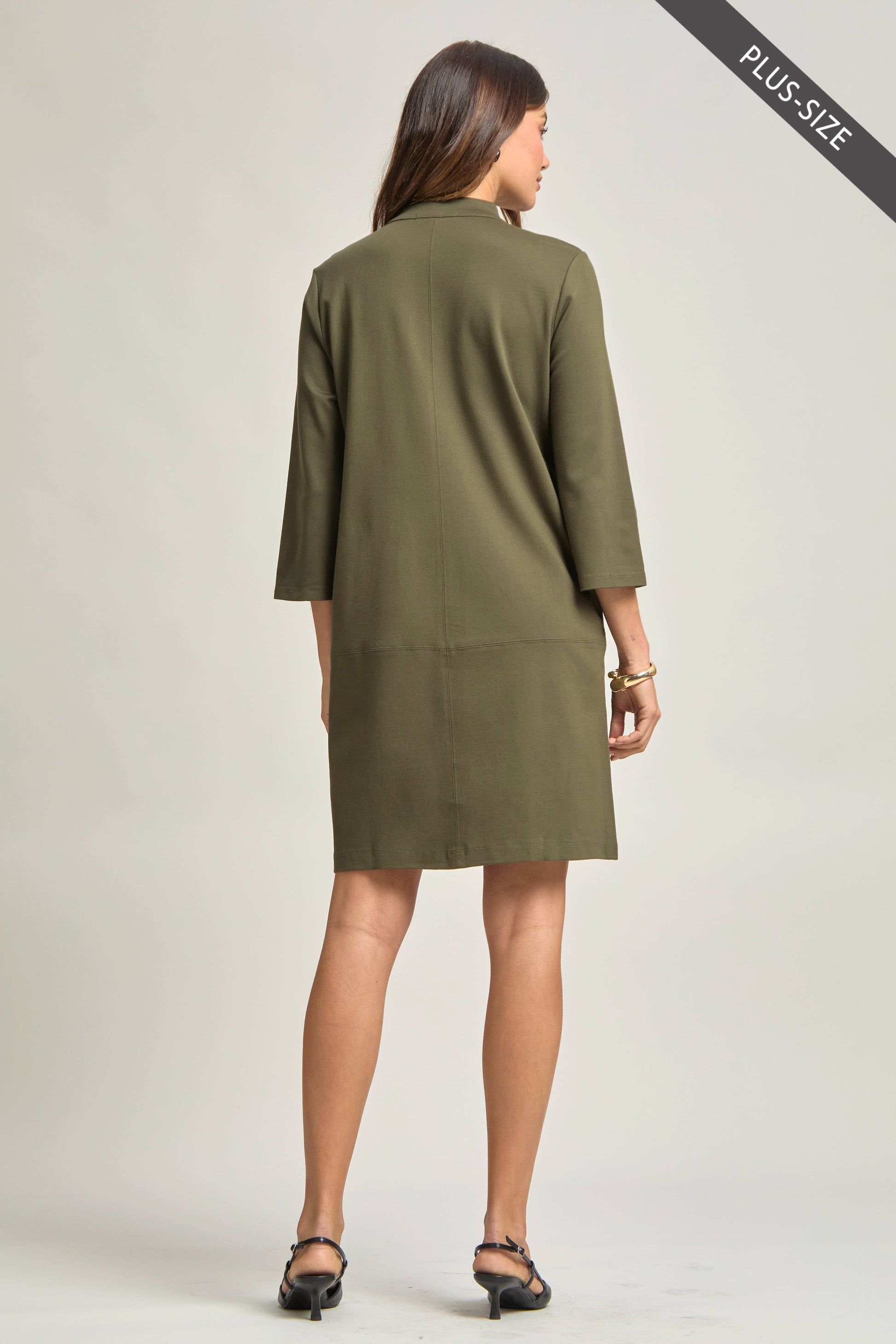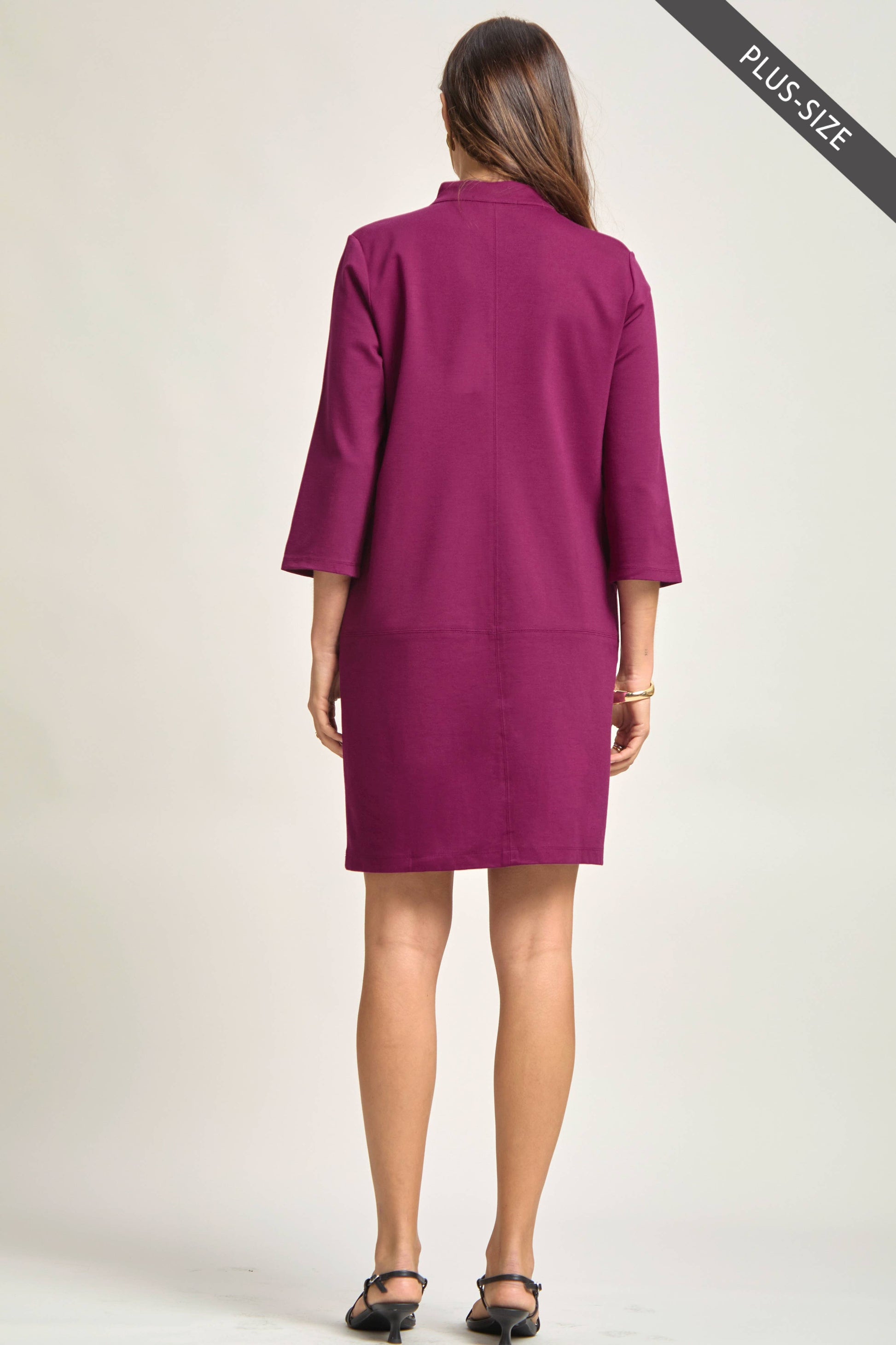 Work-appropriate A line dress with Mandarin collar in our Magic ponte fabric! We love the classic look on this dress. Perfect for any occasion and everyday wear!
