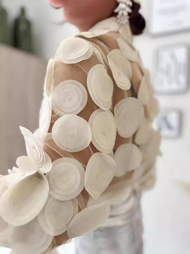 UZ Wholesale Sheer Mesh Embroidered Long Sleeve Shirt: S