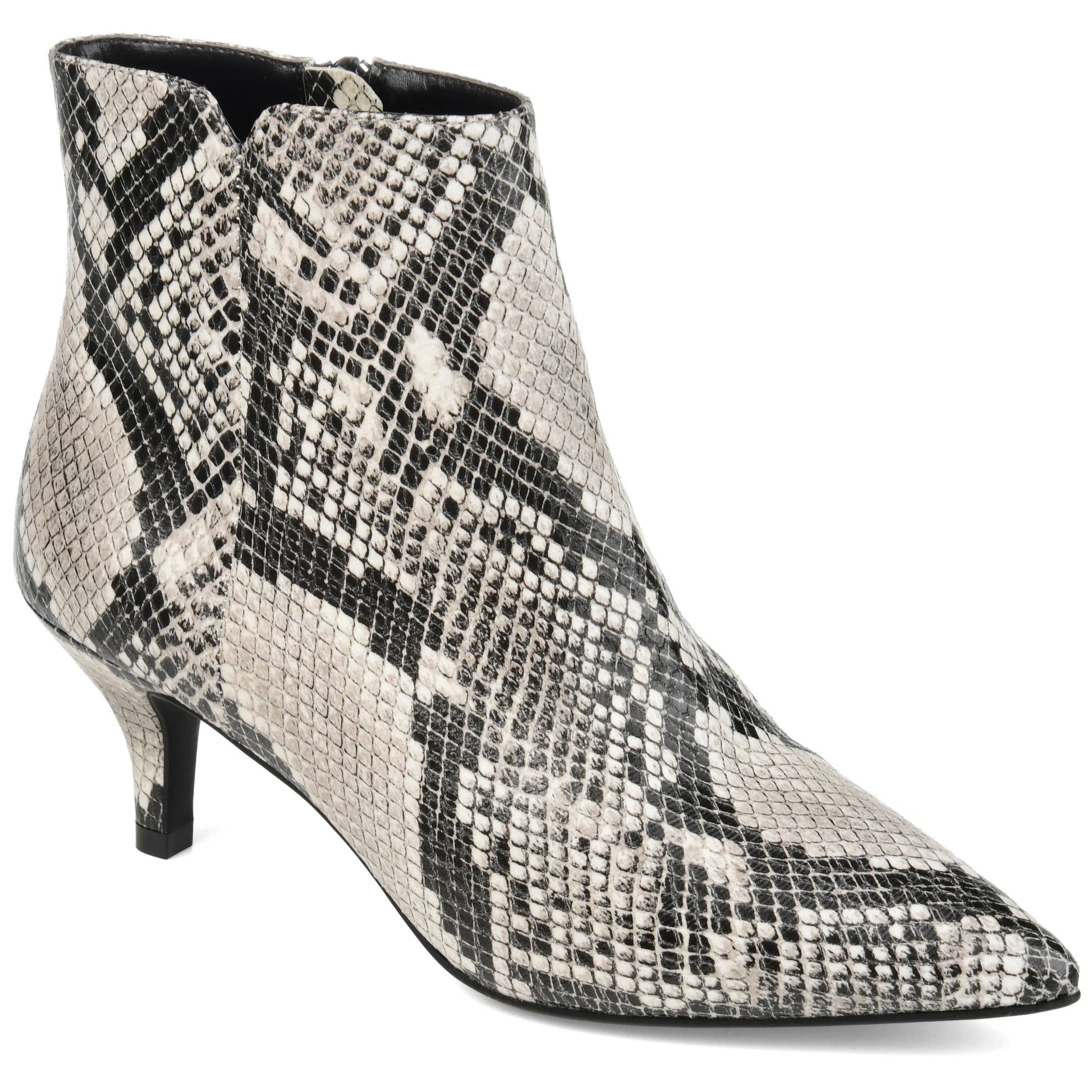 Step into a jaw dropping style with the Isobel bootie by Journee Collection. This designer inspired bootie features a classy pointed toe with a kitten heel. The inside zipper is there for design and easy entry while the multi pattern option finishes off this gorgeous design.