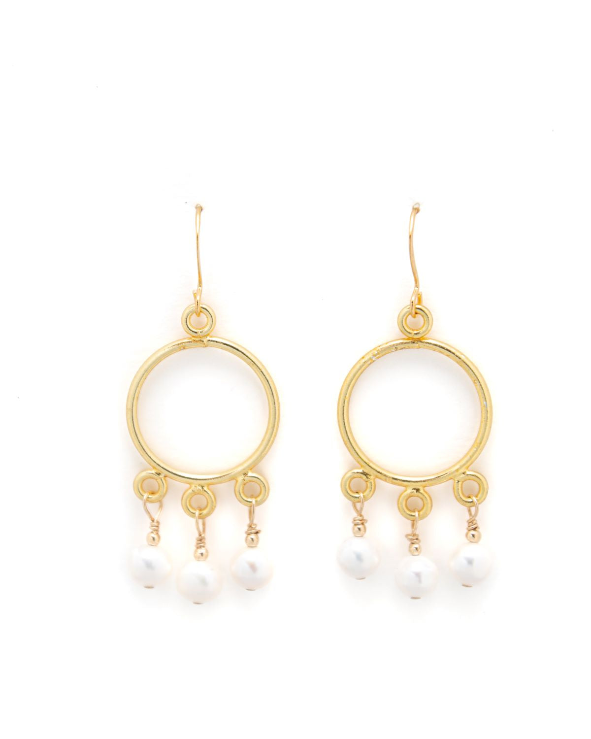 - Gold filled 20 mm hoop chandelier with 3 baroque freshwater pearl drops. Gold filled earwires.